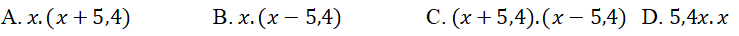 Câu 3. Một mảnh đất hình chữ nhật có chiều dài là x(m); chiều rộng kém chiều dài 5,4m, biểu thức biểu thị diện tích của mảnh đất trên là :