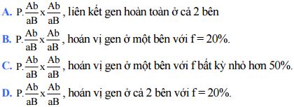 Câu 6: Một cơ thể dị hợp 3 cặp gen, khi giảm phân tạo giao tử ABD = 16%. Kiểu gen và tần số hoán gen của cơ thể này là