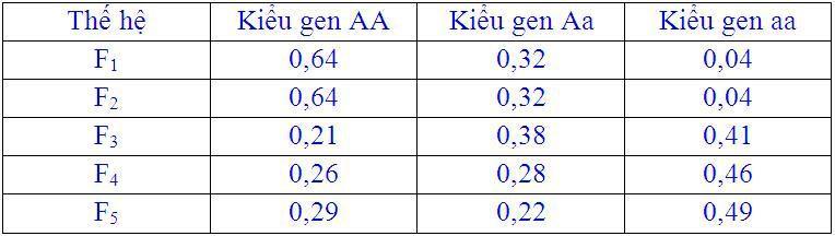 Câu 5: Nghiên cứu sự thay đổi thành phần kiểu gen của quần thể qua 5 thế hệ liên tiếp thu được kết quả như sau: