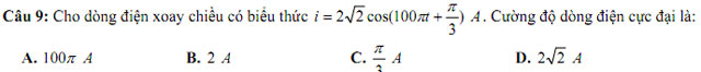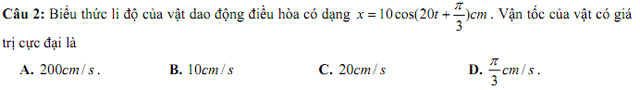 Câu 9: Một vật dđđh có độ lớn vận tốc cực đại là 31,4 cm/s. Lấy π = 3,14 . Tốc độ trung bình của vật trong một chu kì dao động là