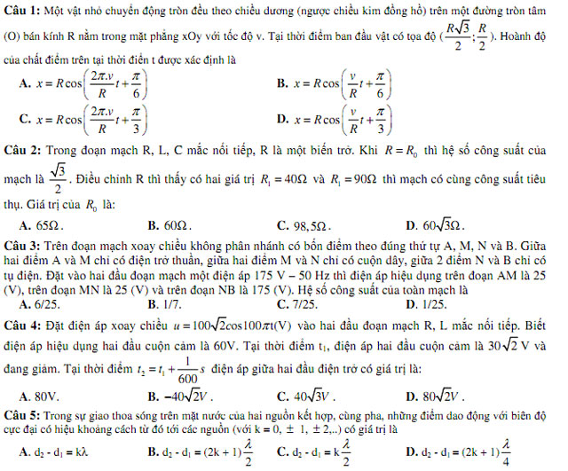 Đề thi thử THPT Quốc gia 2016 môn Lý