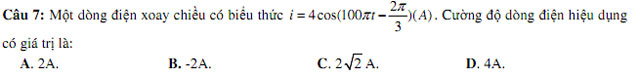 Câu 6: Một CLLX gồm lò xo có độ cứng 20 N/m và viên bi có khối lượng 0,2 kg dđđh. Tại thời điểm t, vận tốc và gia tốc của viên bi lần lượt là 20 cm/s và 2√3 m/s2. Biên độ dao động của viên bi là
