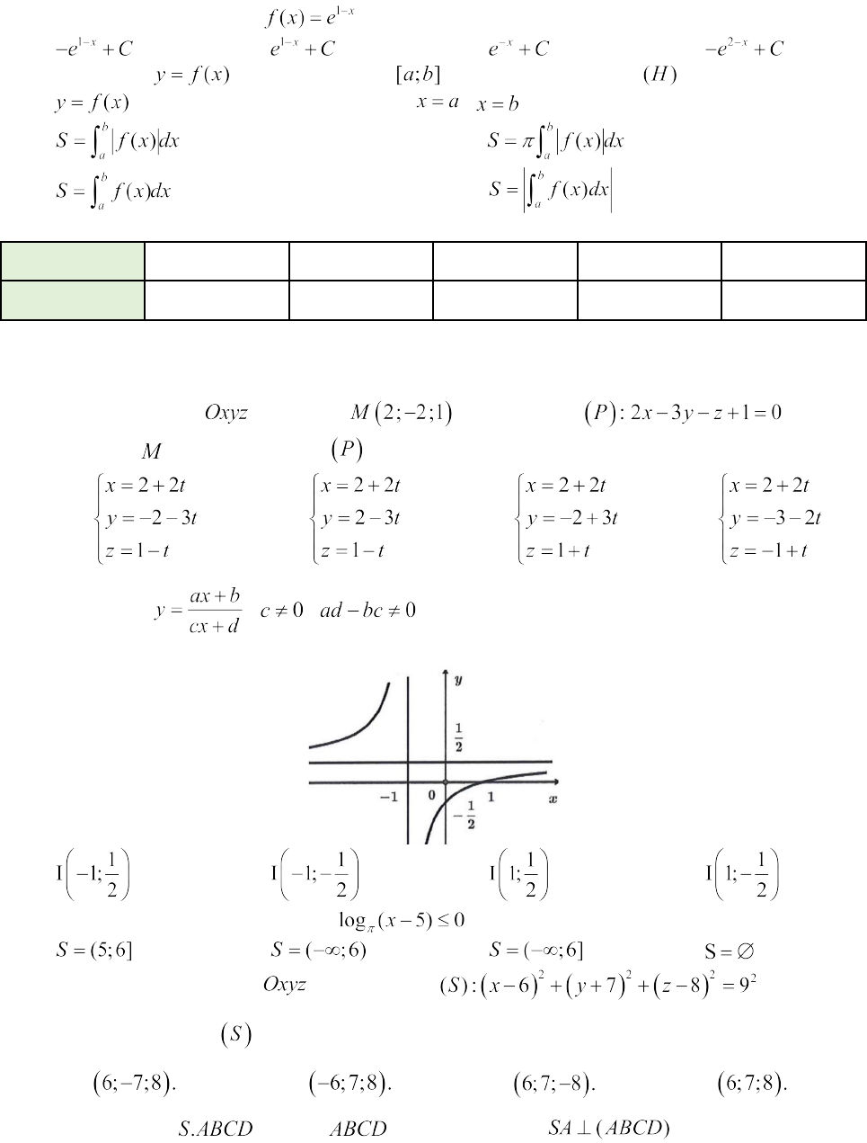 Câu 5: Cho hàm số ( , ) có đồ thị như hình vẽ bên. Tâm đối xứng của hai