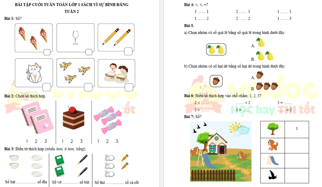 Bộ bài tập cuối tuần Toán lớp 1 Vì sự bình đẳng (Học kì 1)