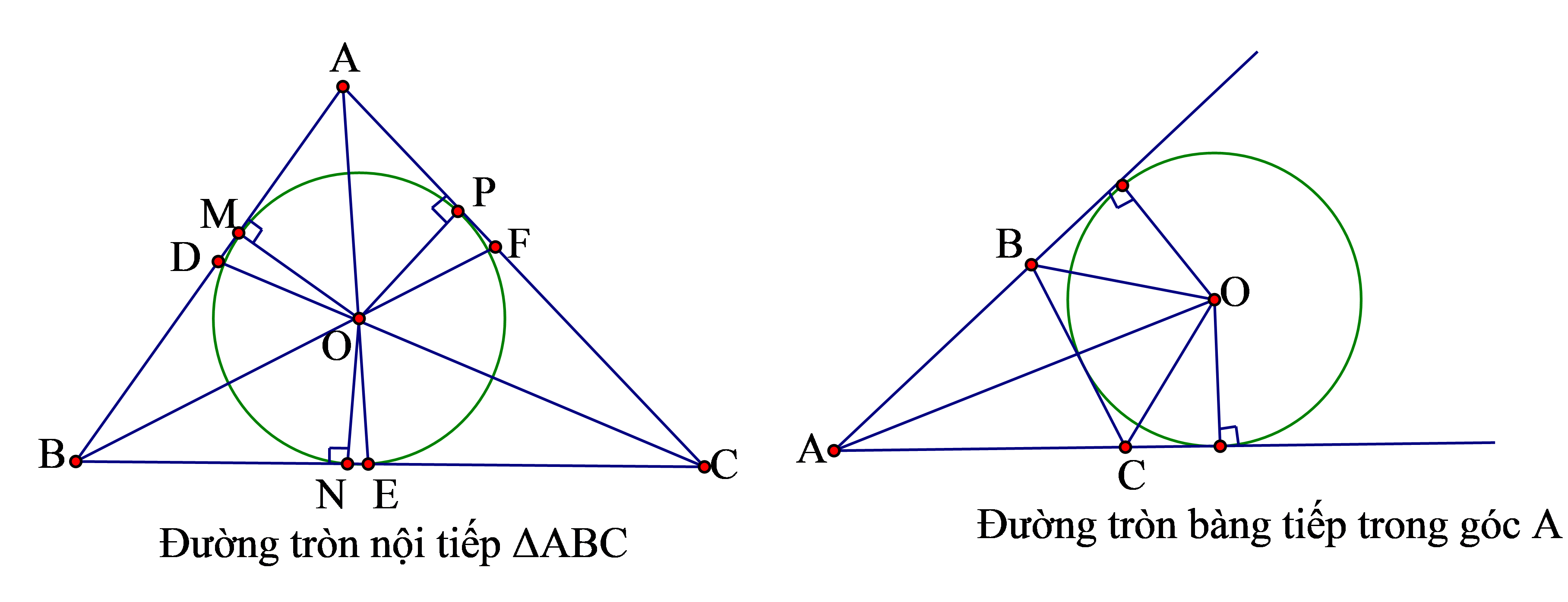 Tâm đường tròn bàng tiếp tam giác trong góc là giao điểm của hai đường phân giác ngoài góc