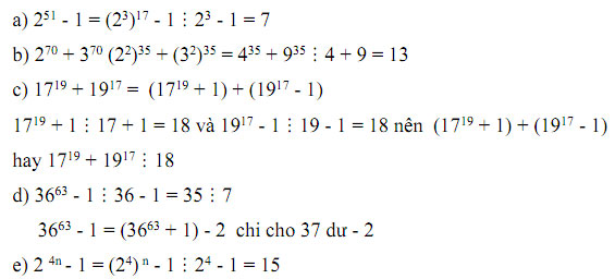 a) 251 - 1 chia hết cho 7 b) 270 + 370 chia hết cho 13