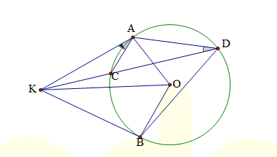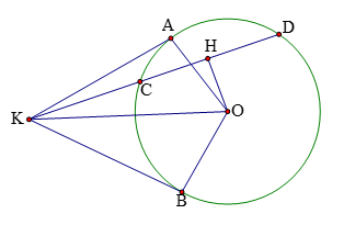 + Từ điểm K nằm ngoài đường tròn ta kẻ các tiếp tuyến KA, KB cát tuyến KCD thì