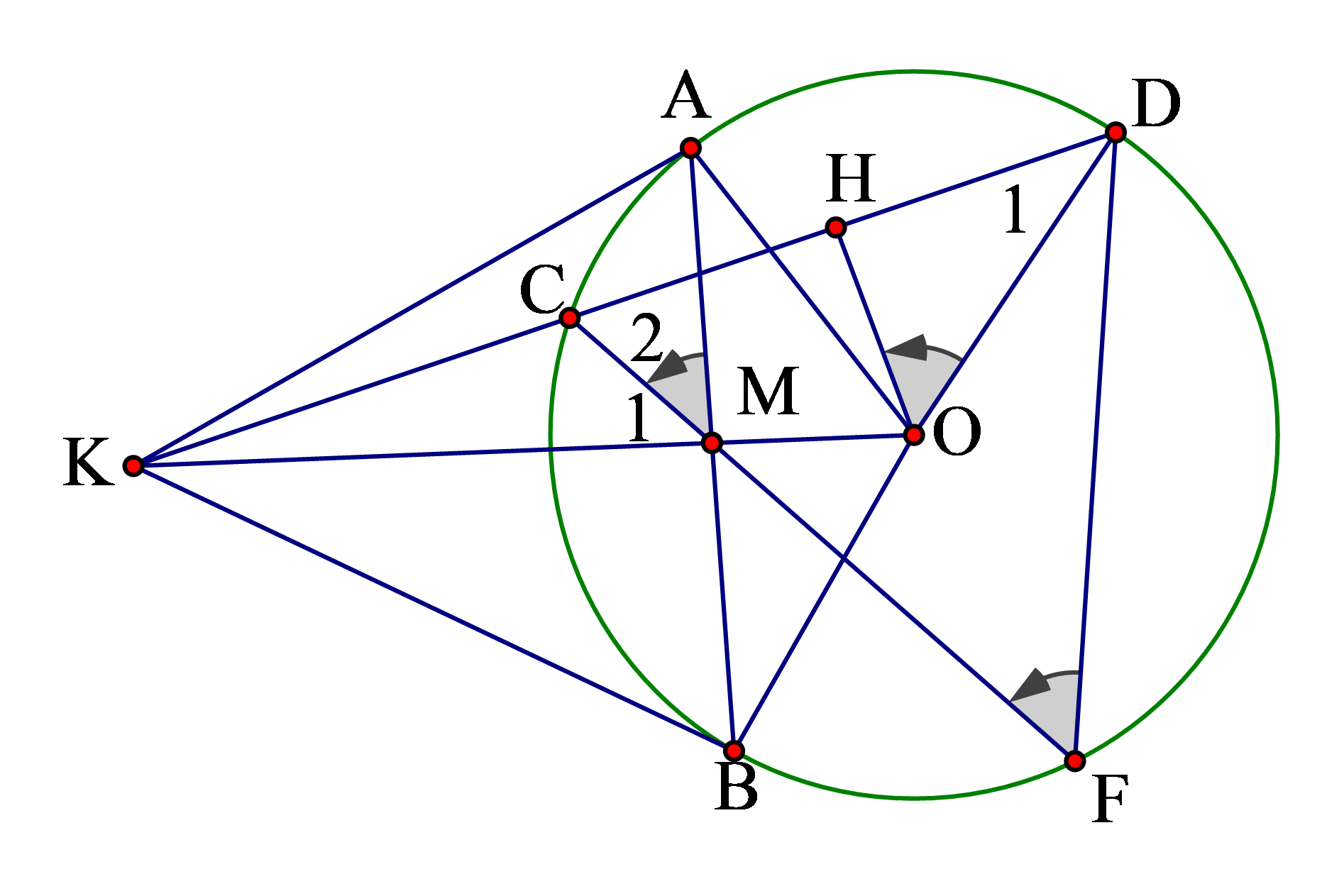 OD = R \Rightarrow \widehat{OKI} = \widehat{OKD}\)