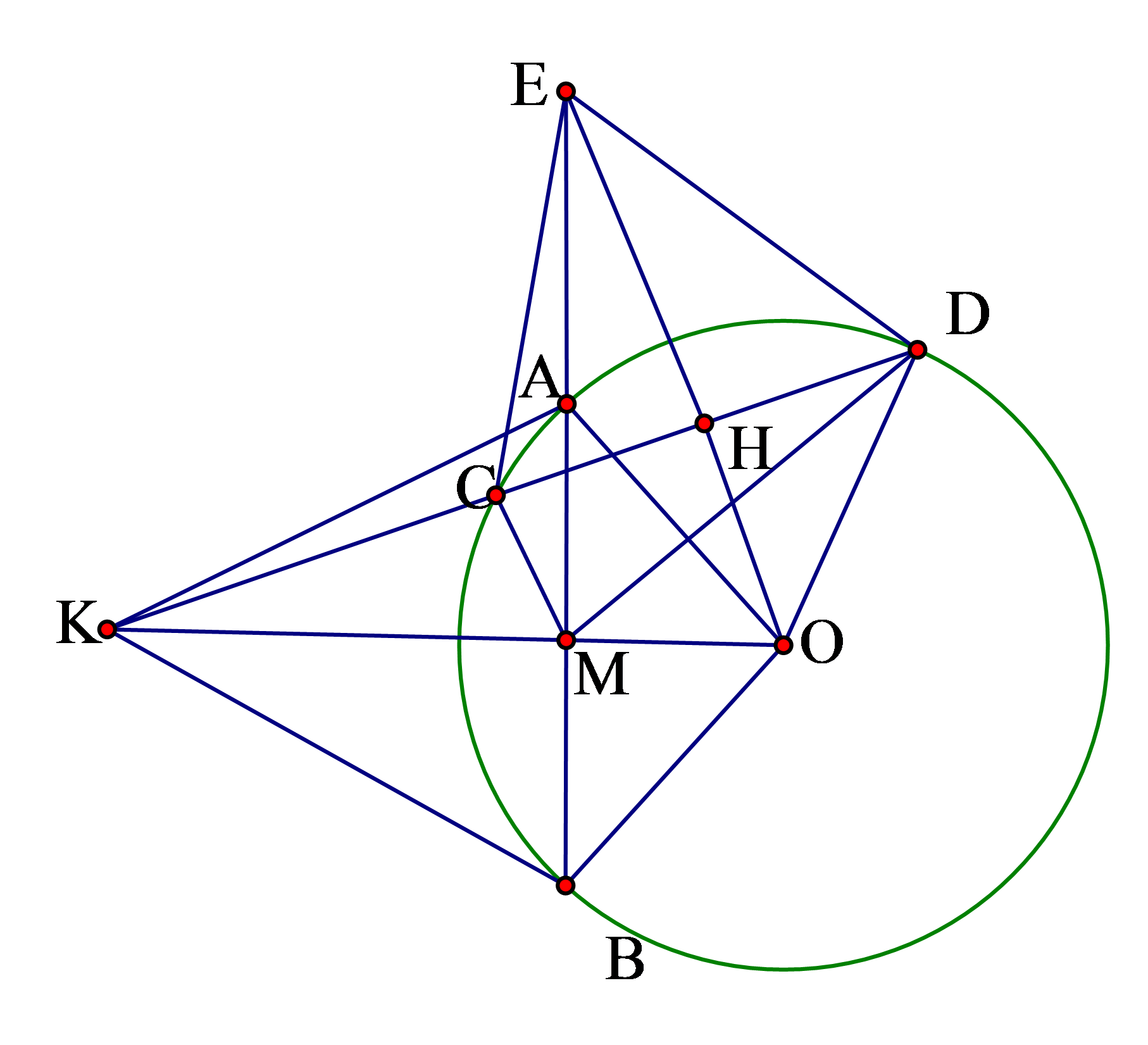\(E,C,M,O,D\) thuộc một đường tròn.