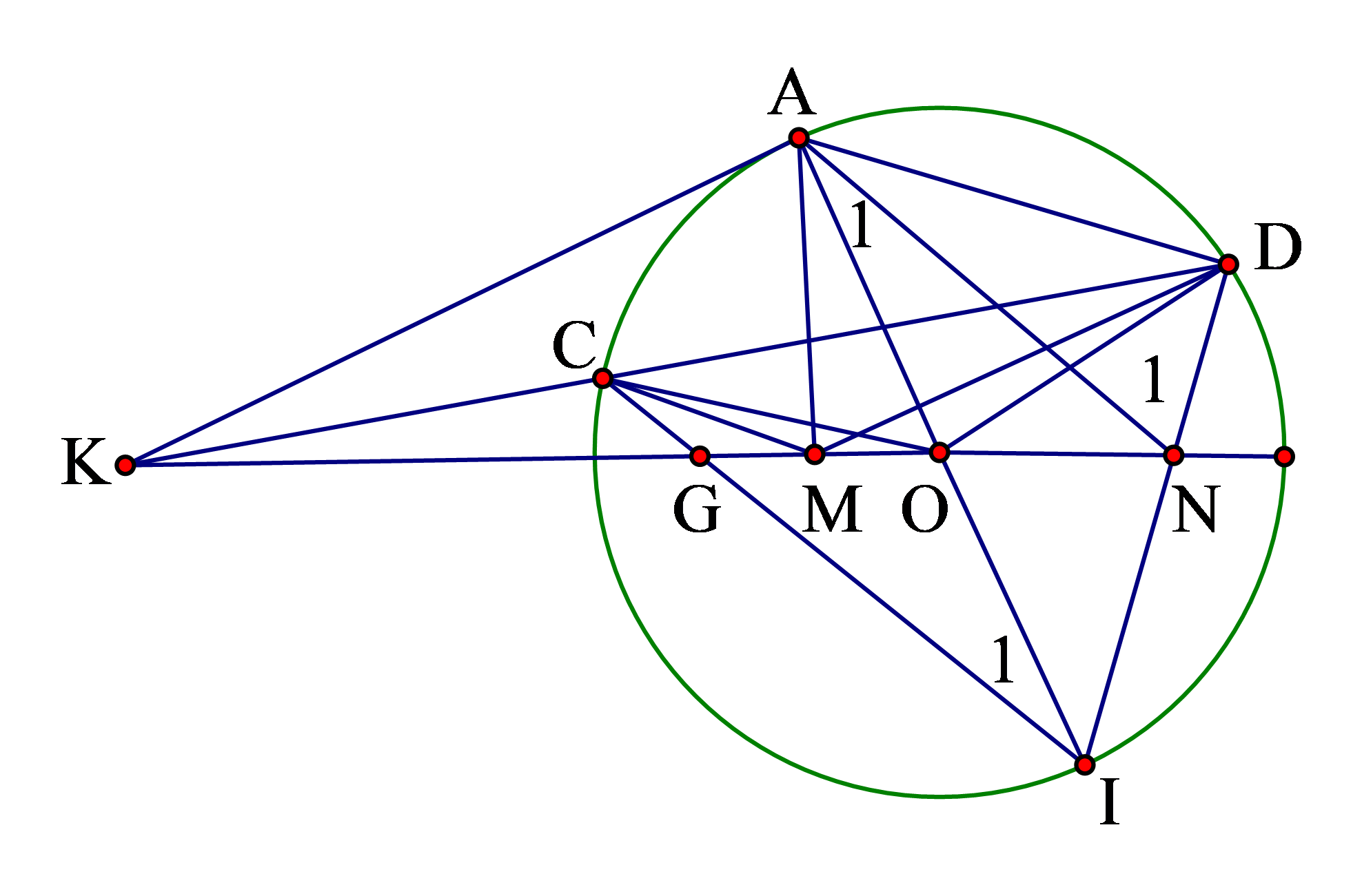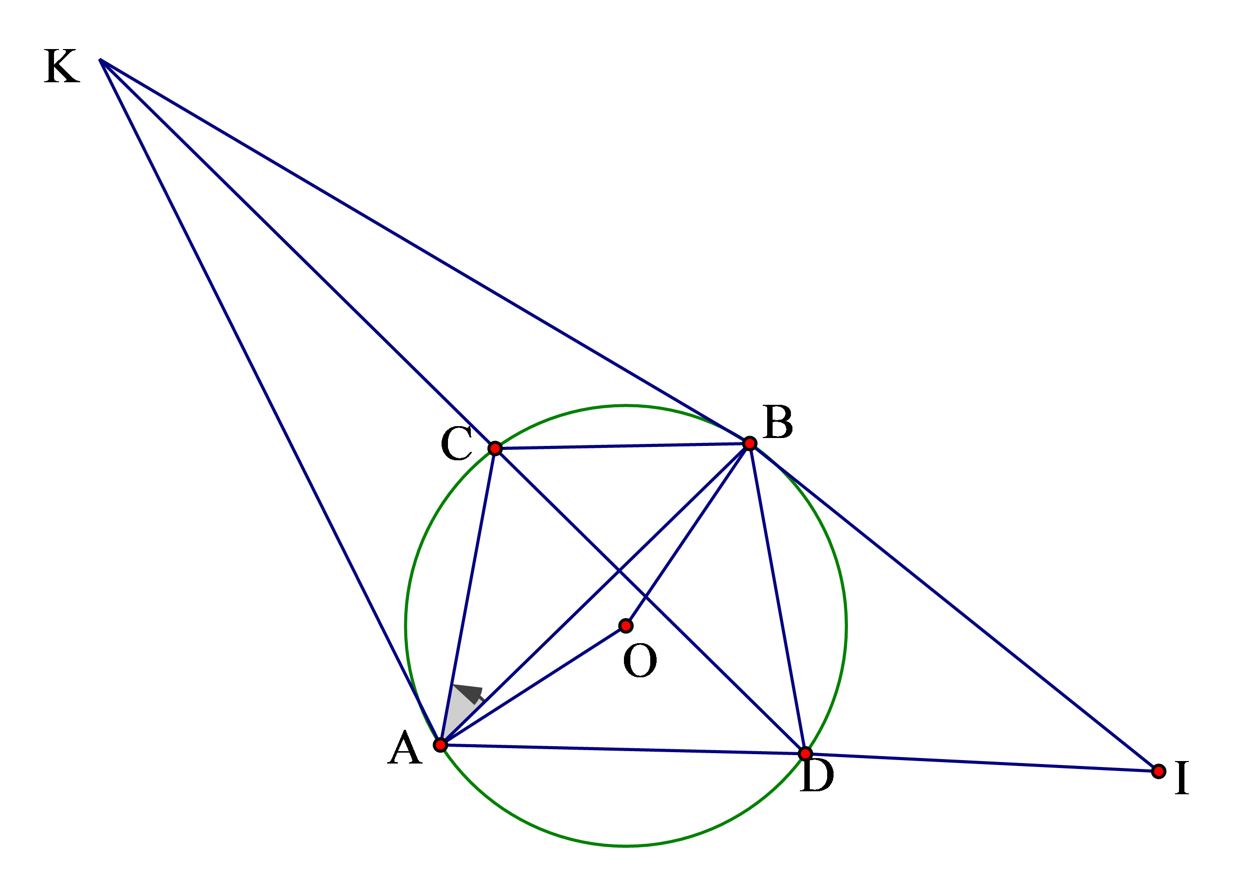 \(KIOD\) là tứ giác nội tiếp việc chỉ ra các góc là rất khó khăn.