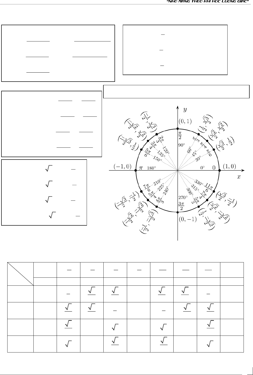 VnDoc.com xin gửi tới bạn đọc bài viết Các công thức lượng giác cần ghi nhớ để bạn đọc cùng tham khảo. Bài viết được tổng hợp lại những công thức về lượng giác cần ghi nhớ như công thức lượng giác cơ bản, giá trị lượng giác của cung có liên quan đặc biệt, công thức cộng lượng giá, công thức nhân đôi nhân ba, công thức hạ bậc, công thức biến tích thành tổng, công thức biến đổi tổng thành tích... Mời các bạn cùng tham khảo chi tiết và tải về tại đây nhé.