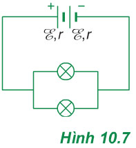 Trong mạch điện có sơ đồ như Hình 10.7, hai pin có cùng suất điện động ξ = 1,5 V và điện trở trong r = 1 Ω