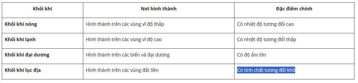 Các khối khí là gì? Cách phân loại các khối khí? Các khối khí có đặc điểm như thế nào?