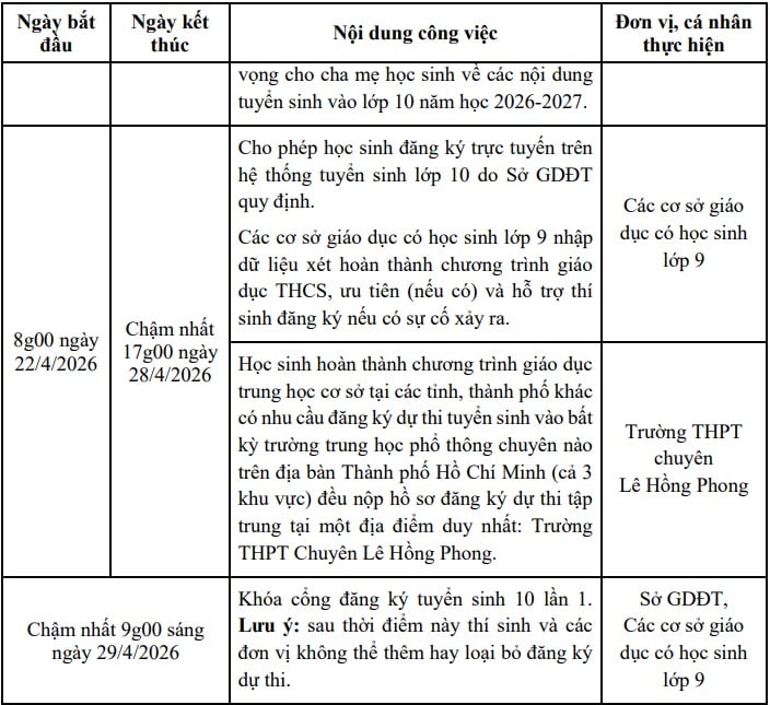 Dưới đây là Các mốc thời gian thi tuyển sinh lớp 10 năm 2026 TPHCM: