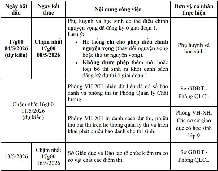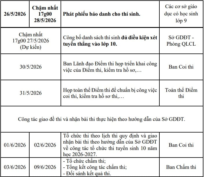 Sở GD&ĐT TPHCM công bố các mốc thời gian quan trọng trong kỳ thi tuyển sinh vào lớp 10 năm học 2026 - 2027 bao gồm: thời gian đăng ký dự thi, thời gian công bố tỉ lệ chọi, điểm thi, điểm chuẩn,...