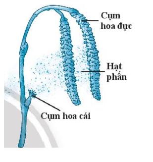 Ở hình trên, yếu tố ảnh hưởng đến sự thụ phấn của chùm hoa phi lao là gió. Trong đó, hạt phấn của hoa đực nằm ở phía trên cao nhờ gió đưa đến đầu nhụy của cụm hoa cái nằm ở phía dưới.