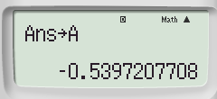 Bước 3: Nhấn tổ hợp phím SHIFT ⟶ RCL ⟶ (-) để gán kết quả vào biến A ta được: