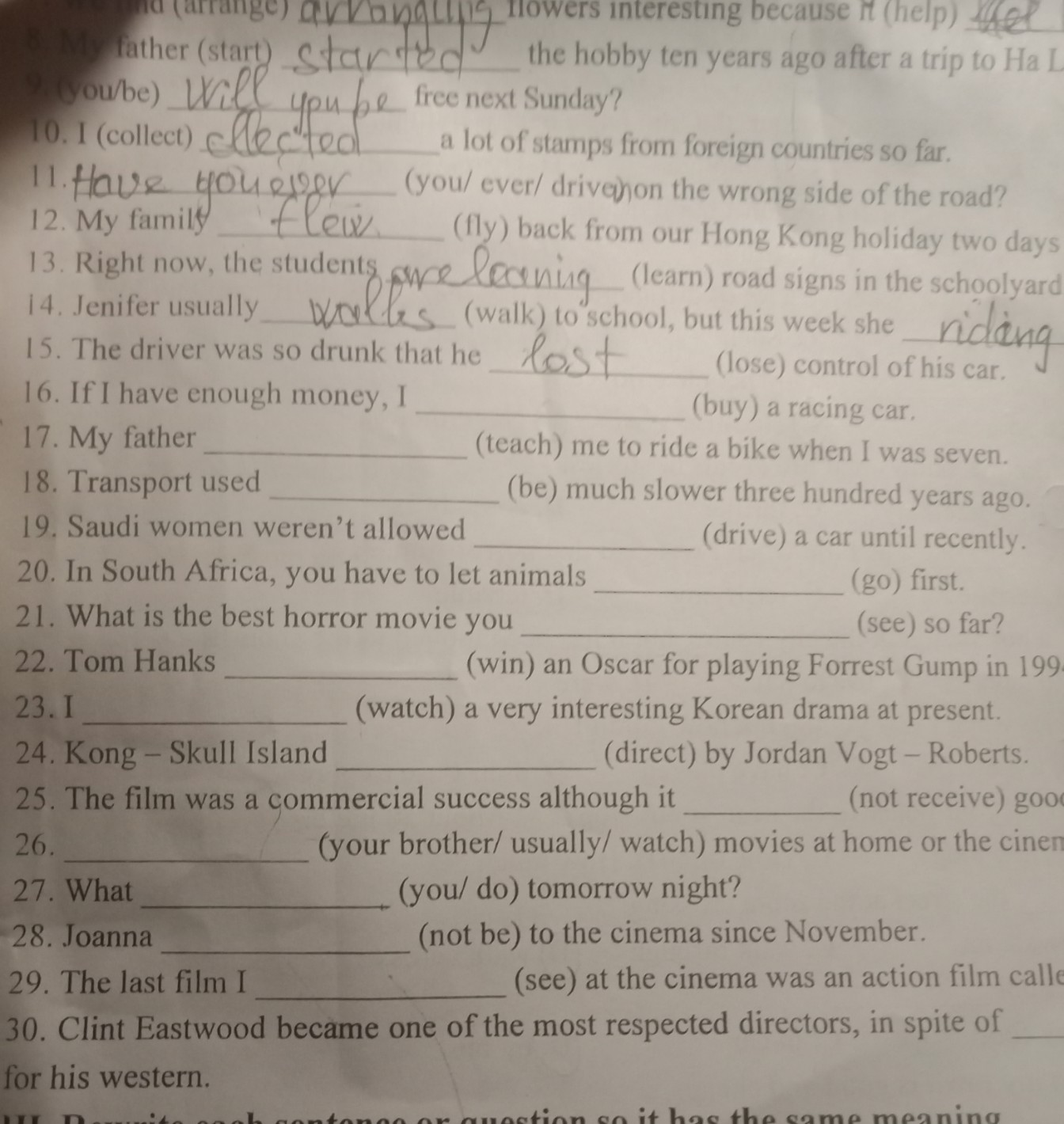 Cách chia động từ trong ngoặc(từ câu 16 đến câu 30