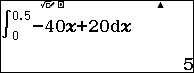 \int_{0}^{0.5}{v(t)dt =}\int_{0}^{0.5}{( - 40t + 20)dt}\)