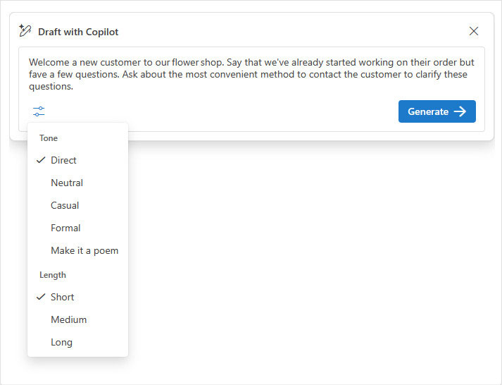 Bước 5: Chọn Generate để Copilot soạn thảo email.