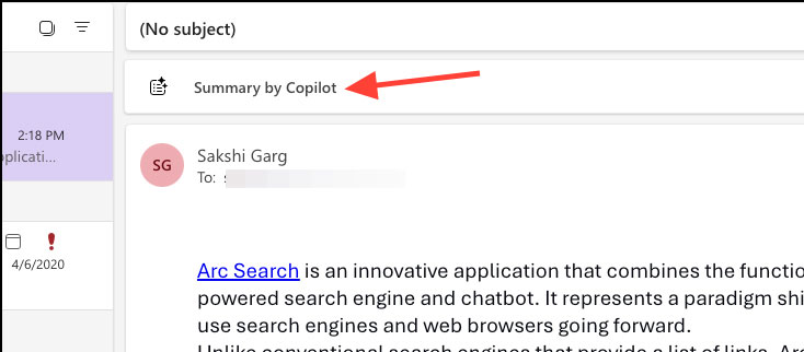 Bước 1: Mở email bạn muốn tóm tắt > Chọn Summary by Copilot.