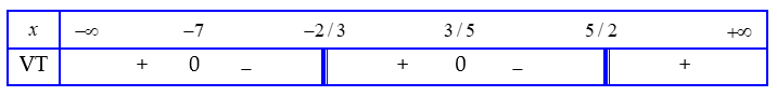 Kết quả xét dấu vế trái:
