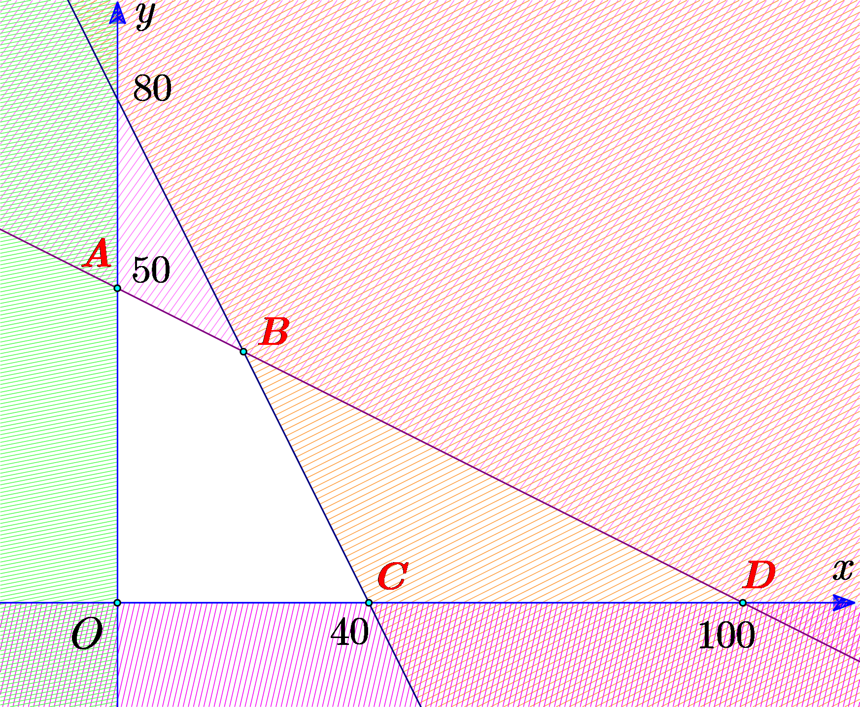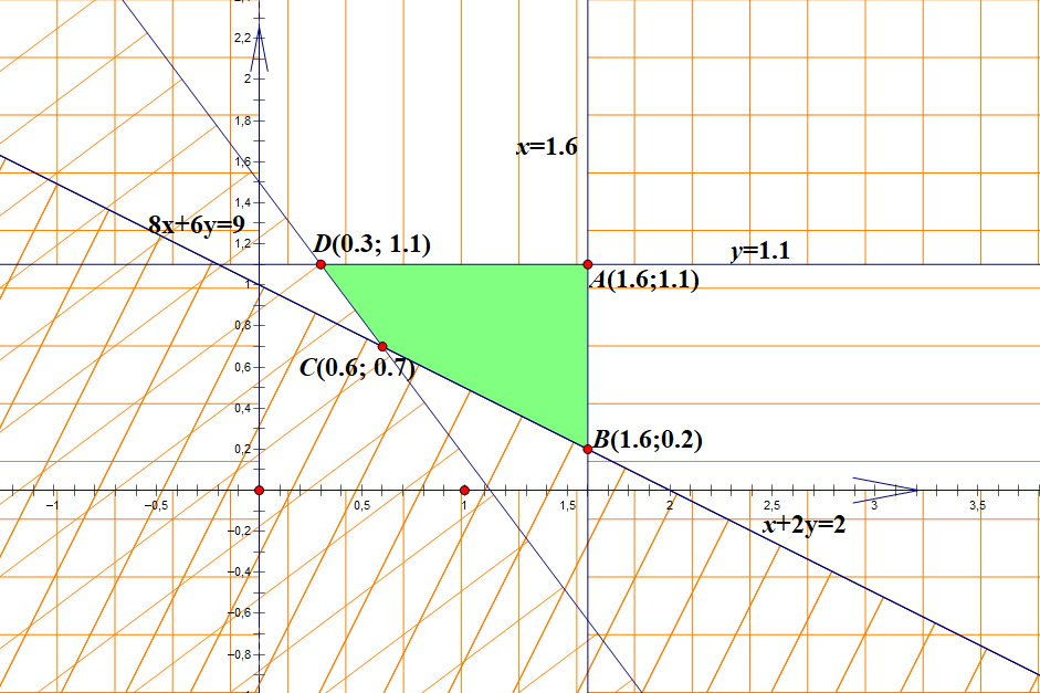\geq 0,4 \Leftrightarrow \ x + 2y \geq 2\)
