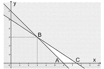 Biểu diễn miền nghiệm của hệ bất phương trình trên hệ trục Oxy ta có: