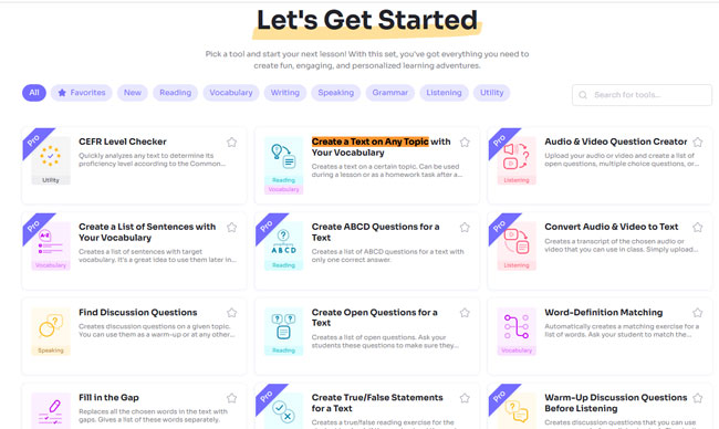 Vào trang https://twee.com, đăng nhập -> Tại Dashboard, chọn công cụ Tools → chọn Create a Text on Any Topic with Your Vocabulary.