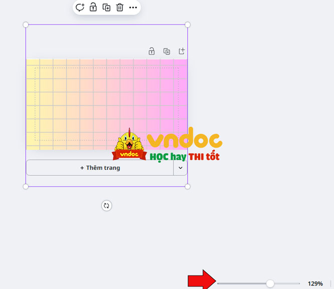 Bước 7: Thu nhỏ phần khung thiết kế -> kích vào nút Xén để cắt cho nó vừa với hình chữ nhật của chúng ta.