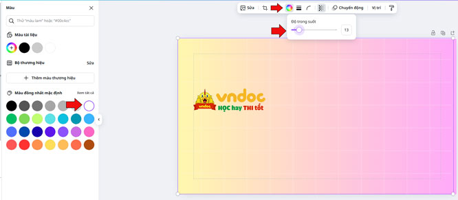 Bước 8: Đổ màu cho lưới. Kích vào nút màu -> chọn màu trắng. Nếu như sáng quá thì mình có thể giảm độ trong suốt xuống, khoảng 70.