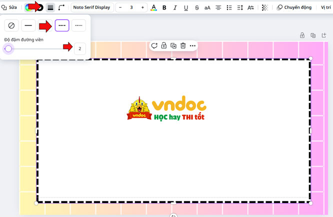 Bước 12: Kích vào Thành phần -> hình dạng để chọn đường viền -> kích vào kiểu viền và điều chỉnh cho phù hợp.