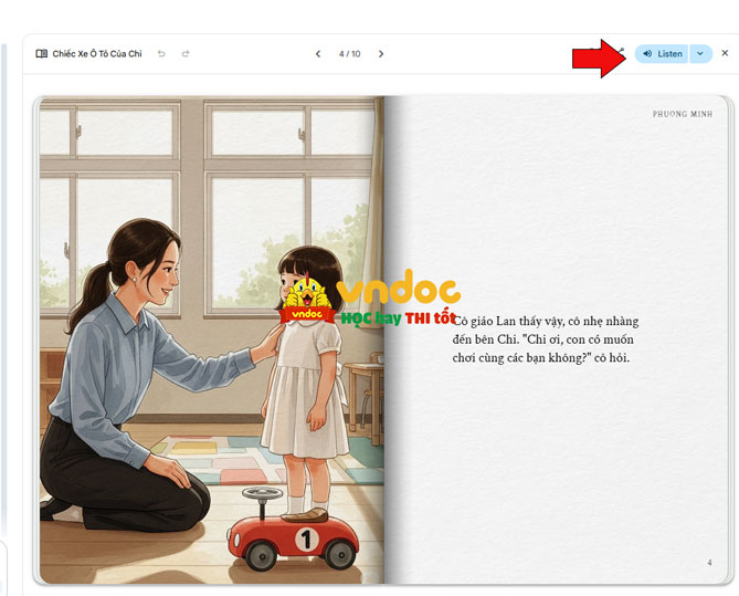Bước 5: Thậm chí Gemini còn có giọng đọc kể chuyện rất ấm áp. Bạn có thể kích vào Listen để bật giọng kể chuyện.