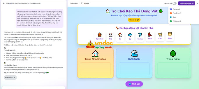 Cách tạo trò chơi kéo thả động vật trên Canva cho trẻ 5 tuổi sẽ hướng dẫn chi tiết từng bước tạo trò chơi kéo thả động vật vừa đẹp mắt, vừa giúp trẻ phát triển kỹ năng quan sát, tư duy logic và nhận biết các loài vật quen thuộc. Chỉ với vài phút thiết kế, thầy cô đã có thể tạo nên một trò chơi học tập hấp dẫn, hỗ trợ trẻ vừa học vừa chơi ngay tại lớp hoặc ở nhà.