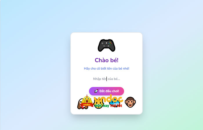Bổ sung câu lệnh: Thêm slide để học sinh điền tên trước khi chơi.