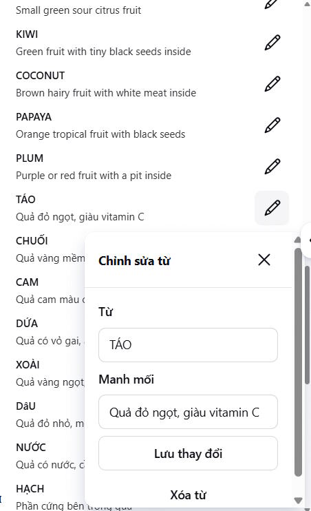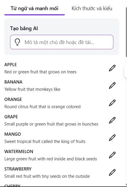Nhấn vào biểu tượng bút chỉnh sửa ở từng từ để thay đổi nội dung hoặc gợi ý nếu cần.