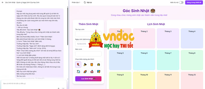 Xóa sinh nhật: Cung cấp chức năng cho phép xóa một học sinh đã được thêm vào (ví dụ: một nút 'X' bên cạnh mỗi tên).
