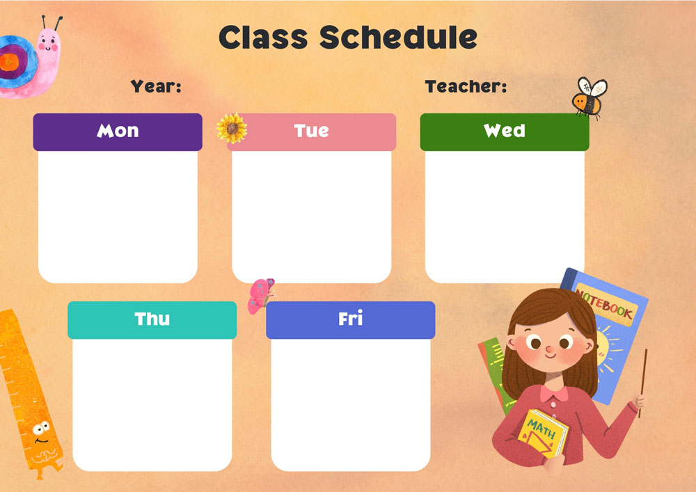 Thời khóa biểu không chỉ là công cụ tổ chức giờ học hiệu quả mà còn góp phần tạo cảm hứng cho cả giáo viên và học sinh mỗi ngày đến lớp. Thay vì bảng thời khóa biểu đơn điệu, thầy cô hoàn toàn có thể tự tay thiết kế mẫu thời khóa biểu sinh động, rõ ràng và thẩm mỹ bằng Canva – một nền tảng thiết kế trực tuyến dễ dùng và linh hoạt.