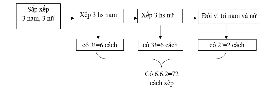 Ví dụ 3. Có bao nhiêu cách sắp xếp 3 học sinh nam và 3 học sinh nữ thành một hàng dọc sao cho nam nữ xen kẻ nhau.