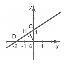 + Gọi H là chân đường vuông góc kẻ từ O đến đường thẳng d. Khoảng cách từ gốc tọa độ O đến đường thẳng d, theo hệ thức lượng trong tam giác vuông là: