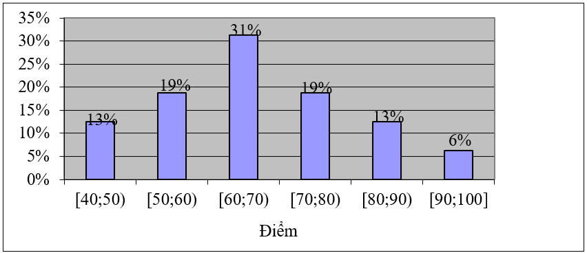 học sinh trong kì thi Tiếng Anh (thang điểm 100) được biểu diễn ở biểu đồ dưới đây: