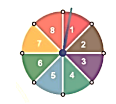 Bài 4. Hình dưới đây mô tả một đĩa tròn, cân đối bằng bìa cứng được chia làm tám phần bằng nhau và ghi các số