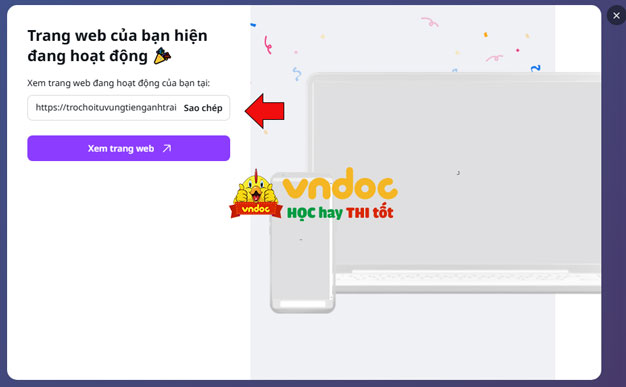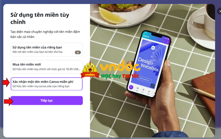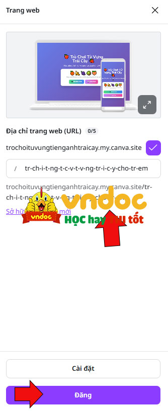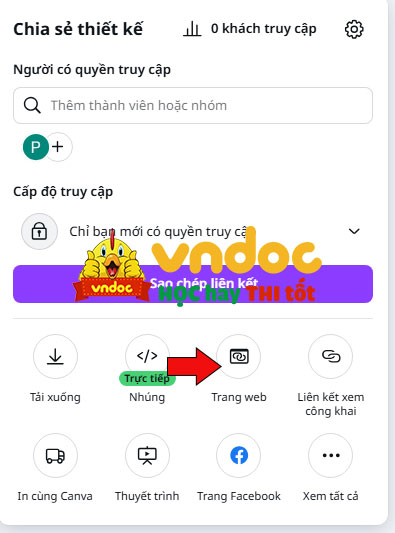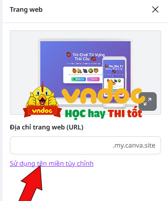 Bước 3: Quay lại Canva, vào phần "Chia sẻ", chọn "trang web" -> sử dụng tên tùy chỉnh