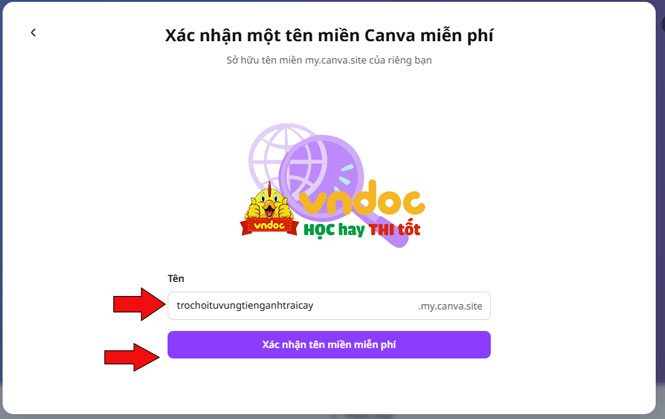 Gõ tên miền -> Xác nhận tên miền miễn phí.