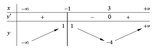 Từ yêu cầu bài toán ta có bảng biến thiên cho hàm số