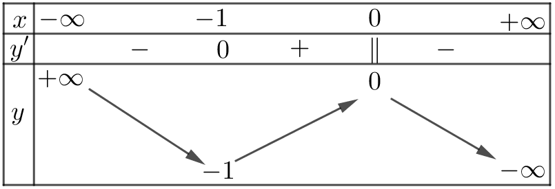 1 \right\}\) và có bảng biến thiên như sau: