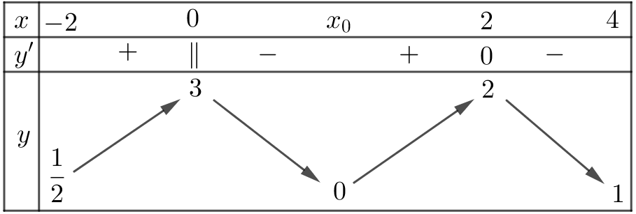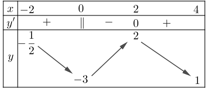 Từ yêu cầu bài toán ta có bảng biến thiên cho hàm số