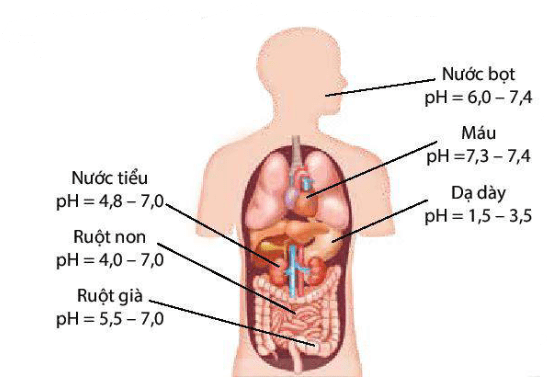 Trong cơ thể của người, máu và các dịch của dạ dày, mật, .. đều có giá trị pH trong một khoảng nhất định.