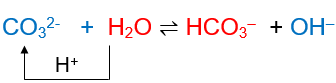Trong phản ứng thuận, CO32- nhận H+ của H2O, CO32- là base, H2O là acid.