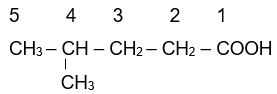 | 2-methylpropanoic acid | 3-methylbut-enoic acid | 4-methylpentanoic acid |